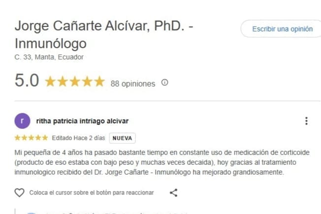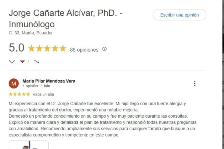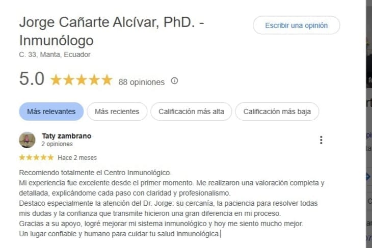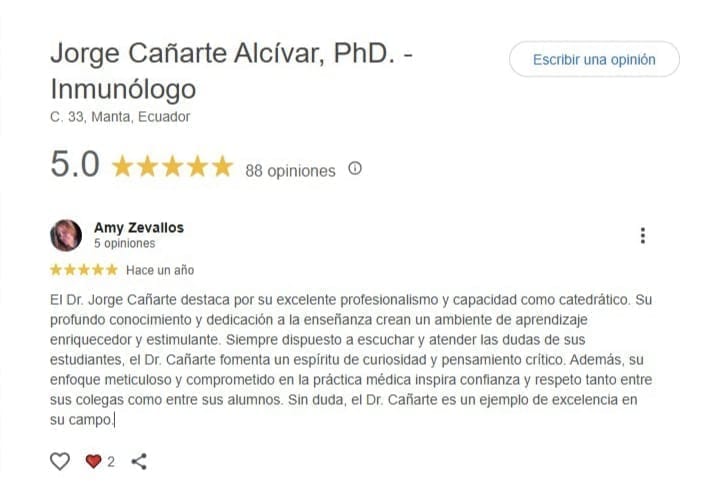 Dr. Jorge Cañarte, Médico Inmunólogo.