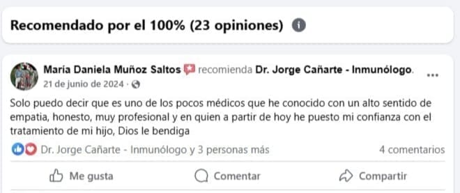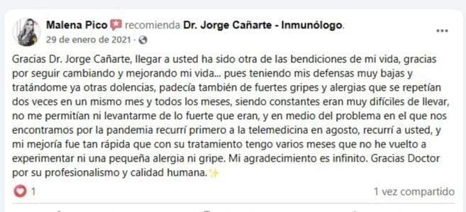 La evaluación inmunológica ha sido clave para recuperar su tranquilidad.